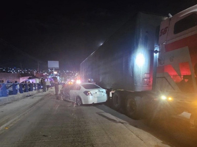 Al llegar al cruce con la calle Monte San Andrés, el vehículo colisionó con su parte frontal izquierda contra el ángulo delantero derecho y costado lateral medio derecho de un tráiler color blanco, que circulaba en el carril central sobre la misma vía, conducido por Arturo de 37 años.
