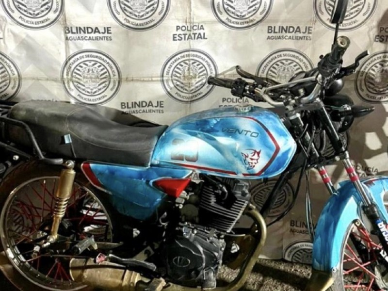 Policías Estatales de Aguascalientes en coordinación con policías preventivos del municipio de Jesús María lograron la recuperación de una motocicleta de la marca Vento, en color azul, que se encontraba siendo empujada con las luces apagadas sobre la avenida Paseo de las Maravillas a la altura de la colonia El Llano del municipio Jesús María, por un sujeto que dijo responder al nombre de Ernesto "N".